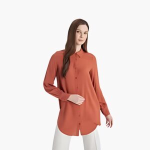 تونيك نسائي بقصة عادية وياقة قميص وأكمام طويلة